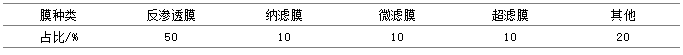 我國的膜產業體系龐大,其中反滲透膜(ro)占據50%左右的市場,納濾膜(nf)、超濾膜(uf)、微濾膜(mf)各占10%,剩下20%被電滲析膜、氣體分離膜、無機陶瓷膜、透氣膜及其他類型所占據,詳見表5。時代沃頓科技有限公司、藍星東麗膜科技有限公司占據國內反滲透膜70%以上的市場份額;北京碧水源科技股份有限公司每年可生產微濾膜和超濾膜1000萬m2;其他公司如海南立昇凈水科技有限公司、江蘇久吾高科等公司在微濾超濾膜領域的年產能力也達到幾百萬平方米;津膜科技有限公司作為國內最大的膜法自來水廠,日處理量達50萬t。我國在北京、上海、天津、杭州等地有從事膜技術研發的高校研究所,給膜企業提供了強大的技術和科研支撐,因此,在區域競爭格局方面,我國知名膜企業主要分布在北京和江浙滬地區,北京以26%占據首位,上海以21%的占比緊隨其后,江蘇與浙江分別有11%與9%的份額,詳見表6。膜企業中,國有企業及事業單位約占50%,另外50%包括民營、外資、合資、個體等多種形式。