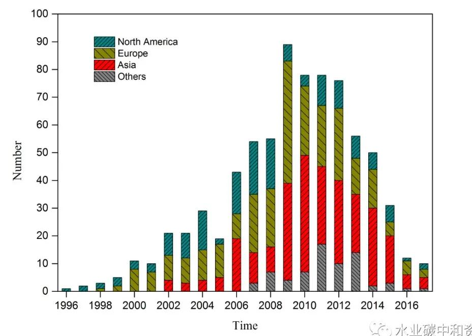 國際權威mbr應用網對世界范圍內近20年來700余座大型mbr污水處理廠應用情況進行了逐年統計,并繪制了如圖2所示的mbr工程應用趨勢。本課題組也統計世界范圍內大型mbr項目(表2)。可以看到,進入21世紀后,mbr技術首先在北美和歐洲獲得青睞,新增項目也都集中在這兩個區域。隨后,亞洲和其它地區(主要為澳洲?北非)迅速跟進。mbr工程應用在2009~2012年間達到鼎盛時期;然而,從2013年開始mbr工程應用出現大幅回落,直至近兩年應用數量只有鼎盛時期10%。