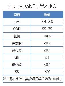 酚氰廢水處理站正常投運后,出水水質穩定達標,其出水水質如表 3所示。
